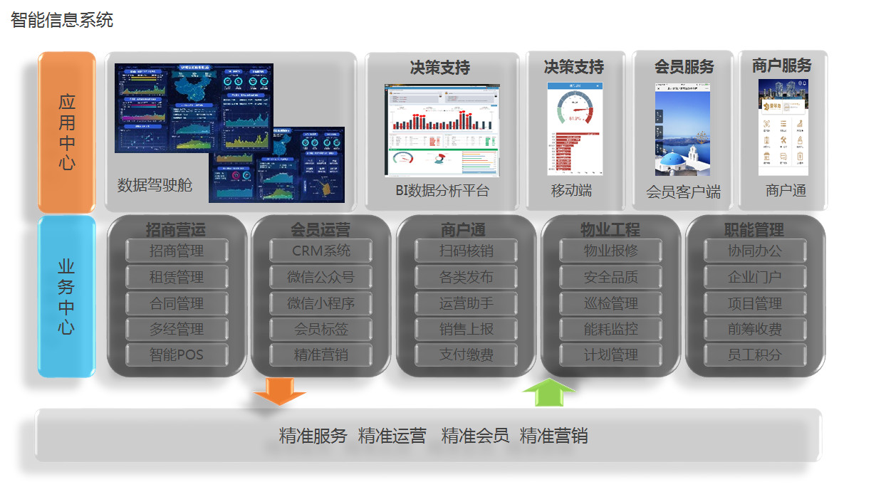 第二部分我給大家介紹我們在運(yùn)營期,在運(yùn)營期其實(shí)技術(shù)和五我們原來的百貨也好,超市也好,最早的技術(shù)應(yīng)用相當(dāng)于是管理,大家也都發(fā)現(xiàn),不管是我們做企業(yè)內(nèi)部的OA審批系統(tǒng),合同管理系統(tǒng),最早全是這樣的系統(tǒng)管理,慢慢會(huì)有消費(fèi)者之間的VIP的管理,到現(xiàn)在這些邊界完全打通,所有的人確實(shí)都在線上了,你的員工、廠家的員工可以建社群,這個(gè)社群可以跟你的購物中心的VIP連在一起的,商戶的商品,你自己的VIP的禮品都是完全可以上線的,他可以變成一個(gè)電子的幾元店,整個(gè)信息系統(tǒng),我們是不斷在完善我們的數(shù)據(jù),我們也有一個(gè)中央處理中心,從管理到商戶到消費(fèi)者都融在一起,然后我們再推出不斷往外延展去影響我們的動(dòng)作。