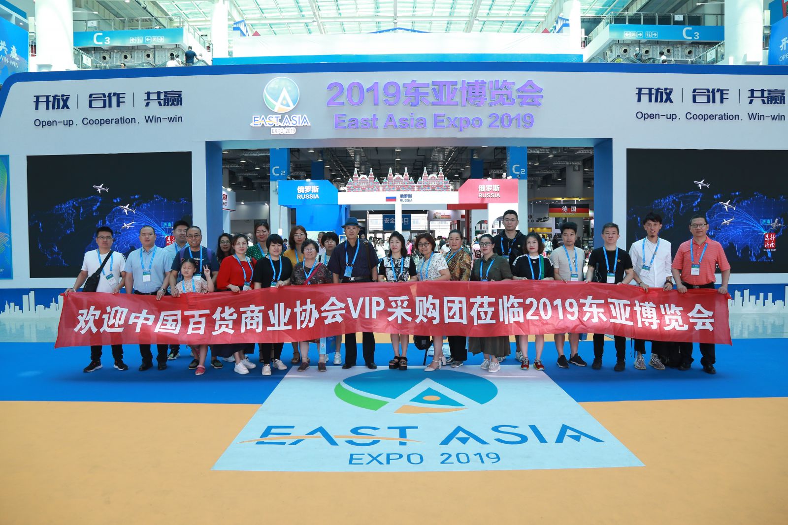 2019年7月5日,中國百貨商業(yè)協(xié)會組織零售企業(yè)70余家,專業(yè)采購商150余人,走進在濟南高新國際會展中心舉辦的2019東亞博覽會,與境外展商進行精準對接及洽談工作。
