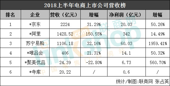 京東、阿里、唯品會、聚美優品、寺庫這五家以電商為主導的公司,實現營收4103.13億元,凈利潤383.46億元,凈利潤率為9.35%,分別占總量的37.45%和52.60%。這還未包括在線銷售已經超過一半的蘇寧易購。