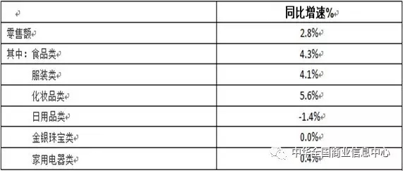 主要商品銷售方面,各品類商品零售額增速均高于去年同期,食品零售額同比增長4.3%,高于上年春節7.1個百分點;服裝類商品零售額同比增長4.1%,高于上年春節10.1個百分點;化妝品零售額同比增長5.6%,高于上年春節1.3個百分點;日用品零售額同比下降1.4%,降幅相比上年收窄0.1個百分點;金銀珠寶零售額與上年持平,增速降幅較上年收窄22.2個百分點;家用電器零售額同比增長0.4%,增速高于上年春節18.5個百分點。