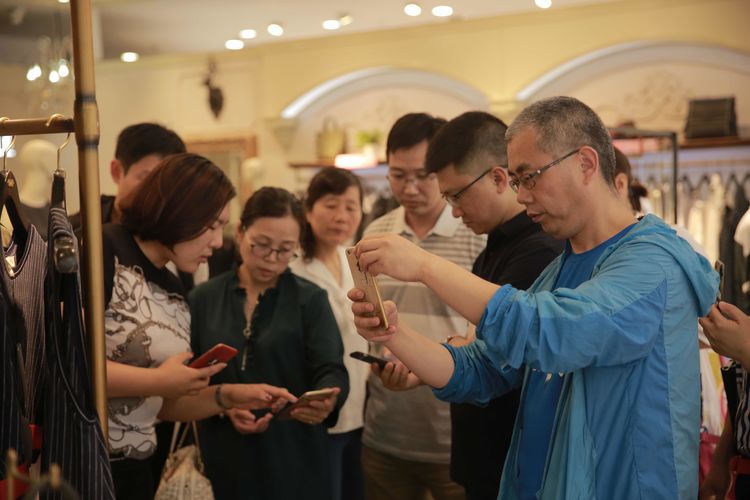 圖為企業代表們在賣場親自操作、感受線上線下互動帶來的購物體驗