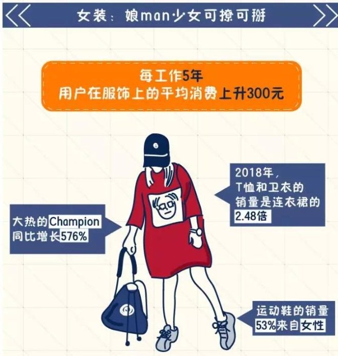 今年女裝的海淘趨勢有兩個明顯的特點。第一是服裝類的客單價和消費者年齡成正比:年齡每長5年,愿意多花300元在購買服飾上;第二是帥氣的中性風備受90后追捧,這從今年海淘T恤和衛(wèi)衣的銷量是連衣裙的2.48倍,53%的運動鞋都被女性買走,運動品牌Champion甚至同比增長576%可以看出來。