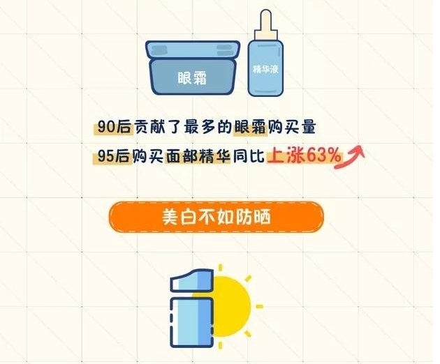 其次,抗初老被90后提上了日程。白皮書顯示,90后已經(jīng)走在了抗初老的第一線,其中,購買眼霜最多的是90后,購買面部精華增速最快的是95后,同比增長高達63%,為了推遲“再見青春”,敢說敢做的90后在抗初老上果然“讓我疲憊卻永不后悔”。