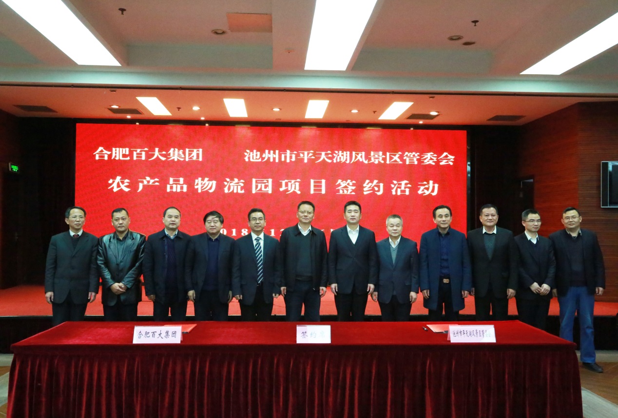 近日,合肥百大集團(tuán)黨委書(shū)記、董事長(zhǎng)劉浩率隊(duì)參加池州百大農(nóng)產(chǎn)品物流園項(xiàng)目簽約儀式。池州市委副書(shū)記、市長(zhǎng)雍成瀚、副市長(zhǎng)劉會(huì)秋、市政府秘書(shū)長(zhǎng)吳慶華、副秘書(shū)長(zhǎng)王正武、平天湖管委會(huì)主任徐友華等出席簽約儀式并見(jiàn)證項(xiàng)目簽約。