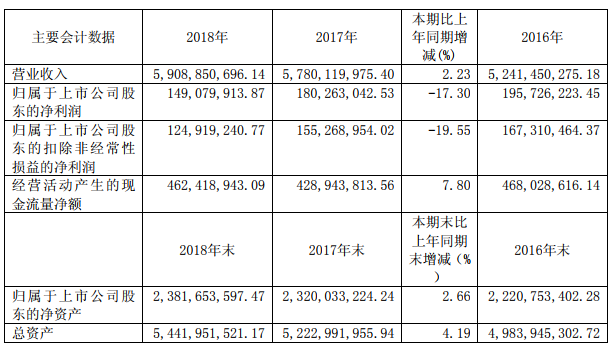 根據(jù)公告,2018年解百實現(xiàn)營業(yè)收入59.09億元,同比增長2.23%;歸屬于上市公司股東凈利潤為1.49億元,同比下降17.30%。