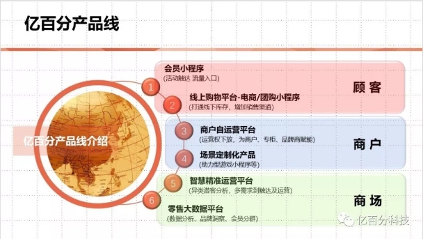 億百分是客戶價值運營的倡導者和先行者。億百分立足商業場景,圍繞客戶價值運營,堅持以效果為導向,依托自主研發的大數據技術和人工智能算法,搭建行業模型庫,通過精確分析、精細運營和精準營銷,為零售企業和品牌公司轉型發展提供數據支持、技術支持、平臺支持和運營服務支持。