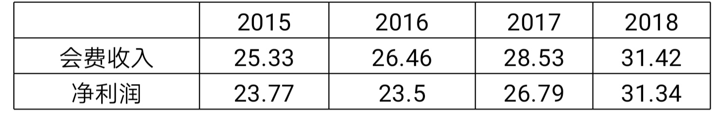 會費收入和凈利潤的比較(單位:億美元)