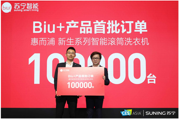 6月12日,2019 CES亞洲消費電子展期間,蘇寧召開Biu+生態大會,發布了全新蘇寧Biu+生態戰略,引來了業內外的強烈關注。會上,蘇寧智能終端公司IoT運營中心總經理朱小杰主持發布了六款Biu+新品,涉及美的、方太、惠而浦、A.O.史密斯、萬家樂等眾多一線品牌的冰洗空和智慧廚衛領域產品,并與合作伙伴現場進行了訂單簽約儀式,首批訂單總量達50萬臺,可謂蘇寧Biu+生態戰略的又一大動作,震驚行業內外。