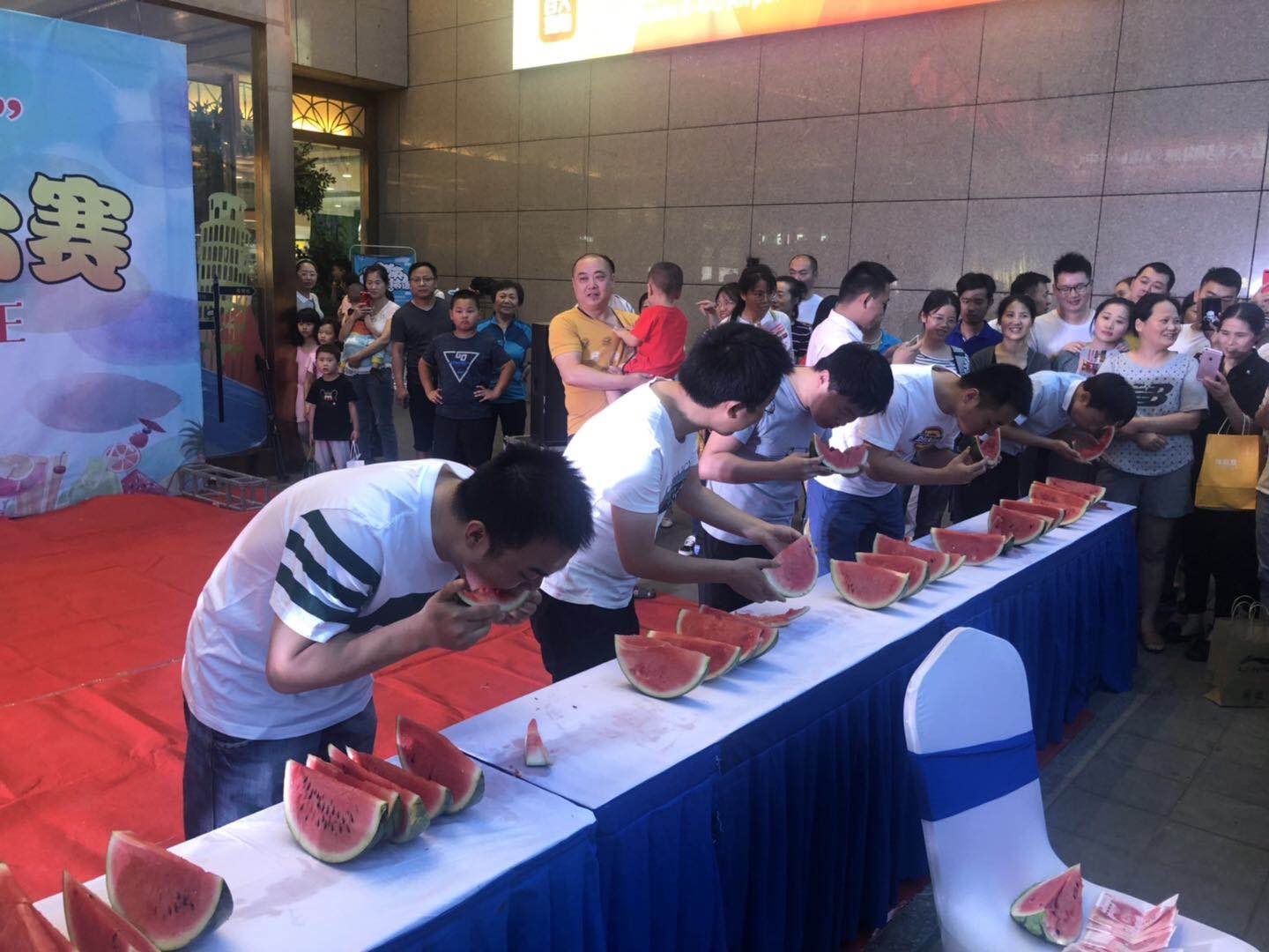 活動的最后一個環(huán)節(jié)是抓錢比賽,全民參與搶紅包,發(fā)令槍響,大家到西瓜區(qū)搶到一塊西瓜并吃完后,跑到紅包區(qū)抓取任意一個紅包,然后循環(huán)往復(fù),直到把紅包抓完為止,所有人一起瓜分了1000元現(xiàn)金紅包。