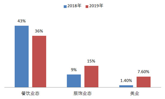 餐飲業(yè)態(tài)占比35% 服飾業(yè)態(tài)緊隨其后
