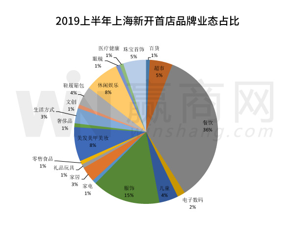 贏商網(wǎng)統(tǒng)計(jì)的《2019上半年上海首店品牌業(yè)態(tài)占比》顯示,餐飲業(yè)態(tài)位居首位,數(shù)量達(dá)42個(gè),占比約36%,其次為服飾業(yè)態(tài),數(shù)量為18個(gè),占比約15%。對(duì)此2018年的上海首店品牌業(yè)態(tài)占比來(lái)看,餐飲業(yè)態(tài)的數(shù)量雖然上升,但占比有所下降,服飾品牌則在數(shù)量和占比上均呈現(xiàn)上升趨勢(shì)。