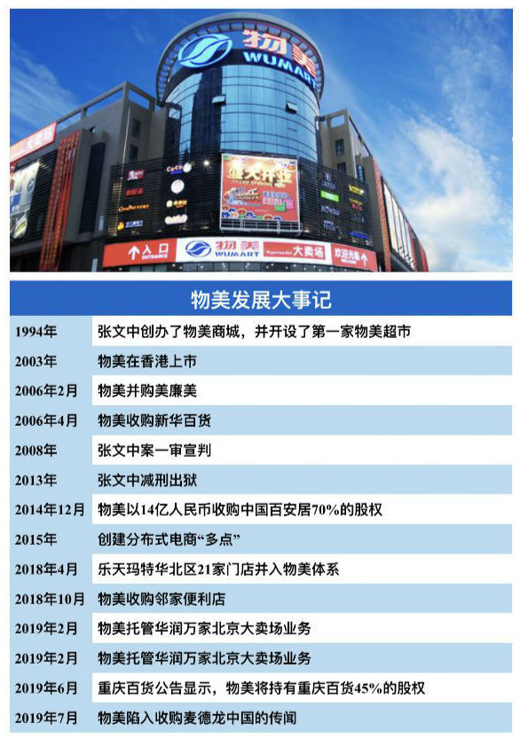 2013年,隨著創始人張文中結束了冤獄生涯,減刑出獄,物美恢復了此前“任性”并購節奏,不同的是,張文中沒有完全走到前臺。2014年12月,物美以14億人民幣收購了源自英國的家居零售企業百安居中國70%的股權,2018年4月,物美又將在中國業務停擺的韓國企業樂天瑪特在華北區21家并入了自己的零售體系,據媒體報道,物美所花的價錢也是14億元左右。