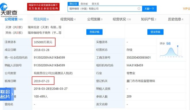 7月25日,紅星新聞記者通過天眼查發現,瑞幸咖啡(中國)有限公司的注冊資本及經營范圍發生變更。