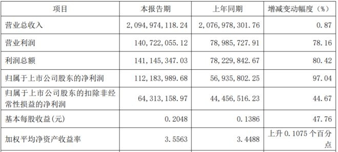 7月29日,三江購物發(fā)布2019年上半年度業(yè)績快報,2019上半年度,公司實現(xiàn)營業(yè)收入20.95億元,同比增長0.87%;歸屬于上市公司股東凈利潤1.12億元,同比上升97.04%。