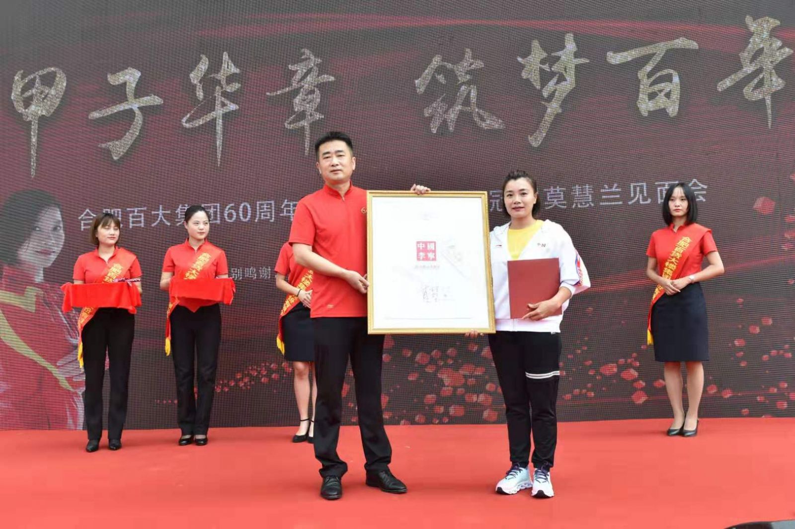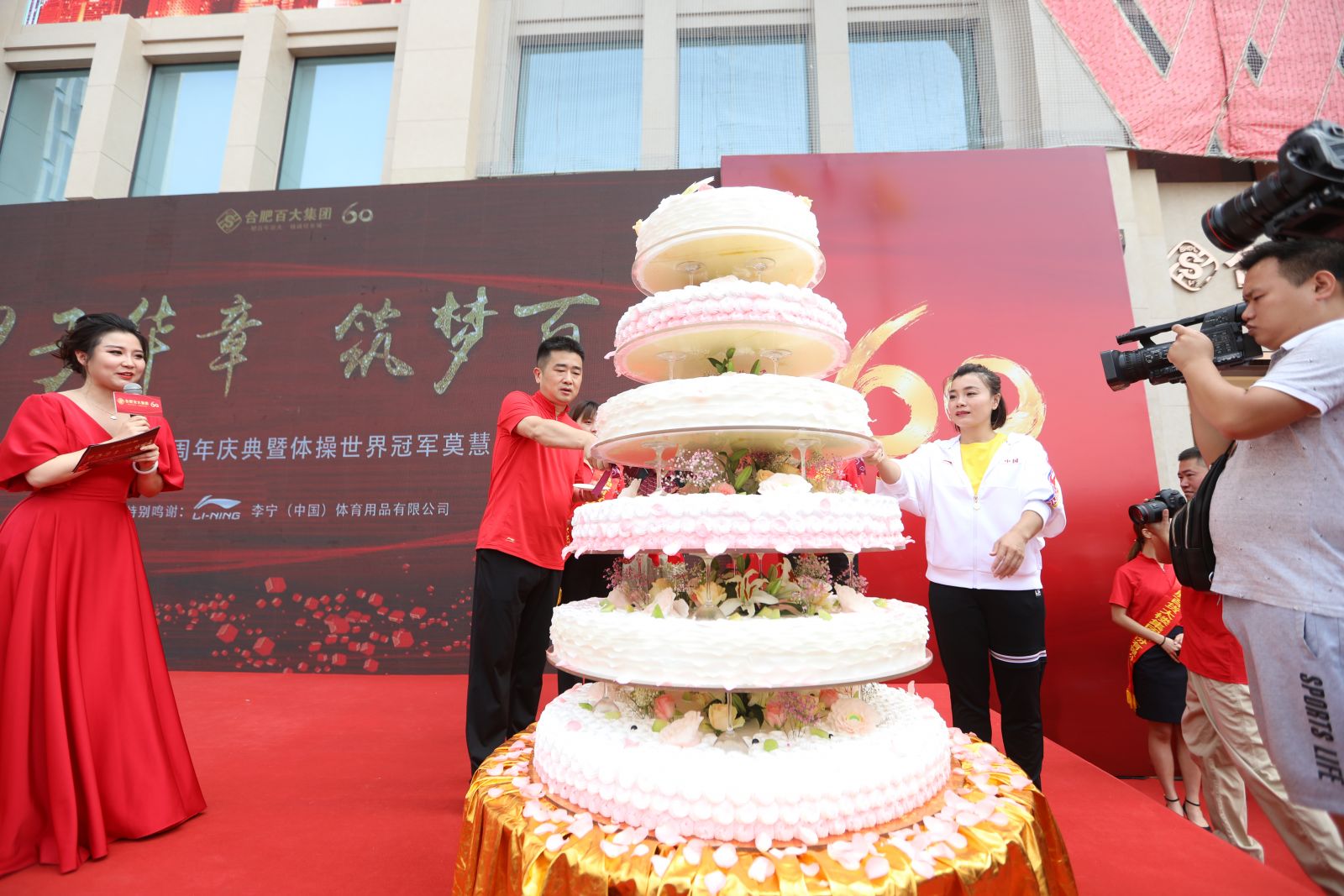 百大集團戰略合作伙伴李寧公司有幸邀請到體操世界冠軍莫慧蘭助陣60周年慶典,百大集團黨委書記、董事長劉浩與體操世界冠軍莫慧蘭互贈禮物并分切60周年生日蛋糕,締結友誼,分享喜悅,并與廣大粉絲親密互動并合影留念。百大集團推出的首款吉祥物IP——豬小百,與員工合唱新司歌《筑夢百大》,祝愿百大集團宏圖大展、再創輝煌。