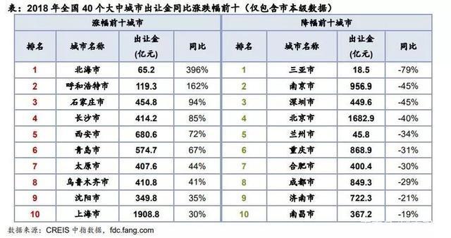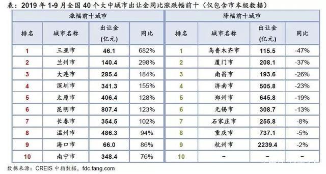 賣地收入TOP20城中,同比增幅排第1名的昆明,在40個大中城市中只能排第6名。在它之前還有三亞、蘭州、大連、深圳和太原。
