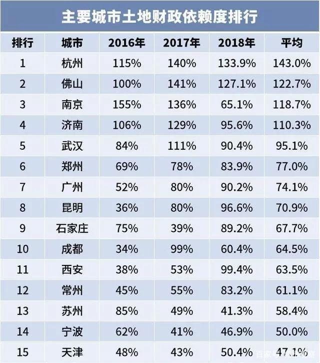 2017和2018年,杭州都是比值最大的城市,其中2018年達到133.9%。不過如前所述,這跟發(fā)展階段有關(guān)。值得注意的倒是昆明、石家莊、常州等弱二線城市,它們?nèi)ツ甑囊蕾嚩榷荚?0%以上。