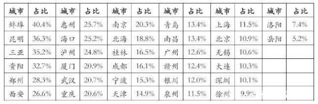前三季度的數(shù)據(jù)顯示,房地產(chǎn)依賴度排在前五的城市,分別是蚌埠(40.4%),昆明(36.3%),三亞(35.2%),貴陽(32.7%),鄭州(28.3%)。