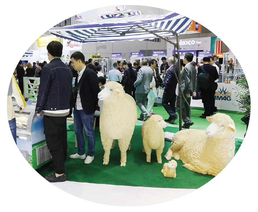 獵人牛肉26款產品及來自塔斯馬尼亞島的櫻桃、蘋果、香梨等水果繽紛亮相。其中,獵人牛肉的高端產品——11款M9+黑金和牛產品首次整體參展,備受青睞。