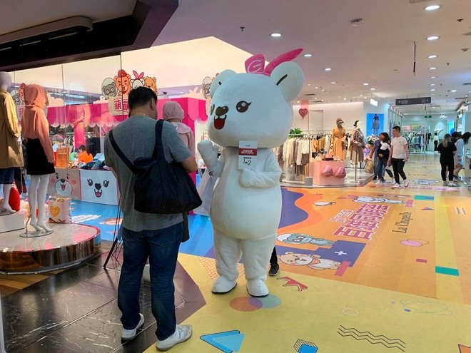 不過比起更大力度的促銷優惠,今年的百貨商場更注重開發新的消費體驗。廣百股份首次發布原創IP——“百熊家族”,借“品牌+IP”的概念,將商場打造成潮流聚集地,時代財經在現場看到,不少消費者爭相與萌意十足的人扮玩偶合照,打卡各層的網紅拍照點,并通過扭蛋、讀秒等游戲和抽獎活動獲得獎勵。