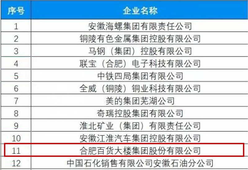 2019安徽省百?gòu)?qiáng)企業(yè)榜單