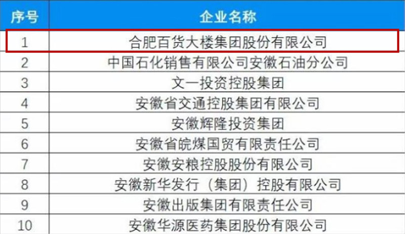 2019安徽服務(wù)業(yè)百?gòu)?qiáng)企業(yè)榜單