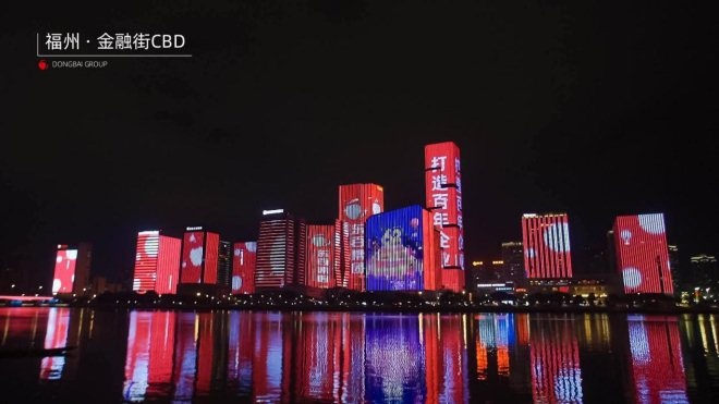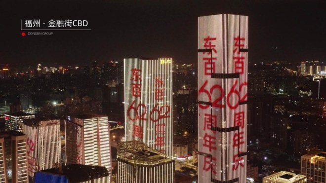 而集團的另一大核心——東百商業則在其“大本營”福州會場,選擇點亮了海峽金融商務區,上演一場氣勢恢弘的主題燈光秀,表達了一家深耕城市62載的企業心聲:感恩時代,我愛福州。此外,商業標桿項目蘭州中心也在黃河畔,點亮了城市制高點為集團慶生。