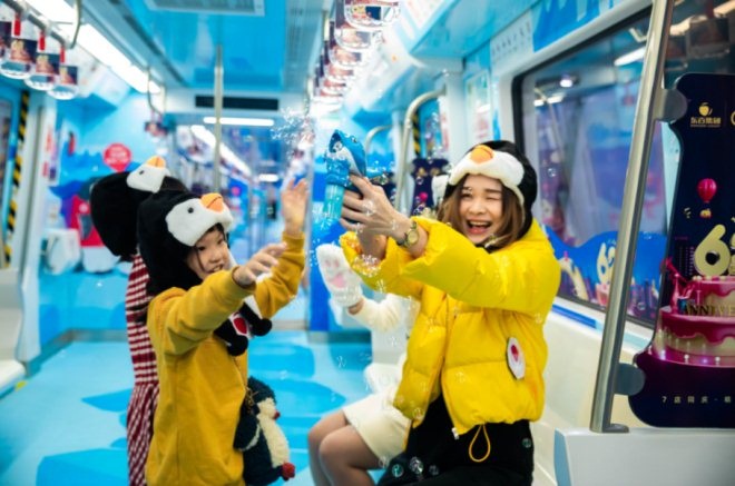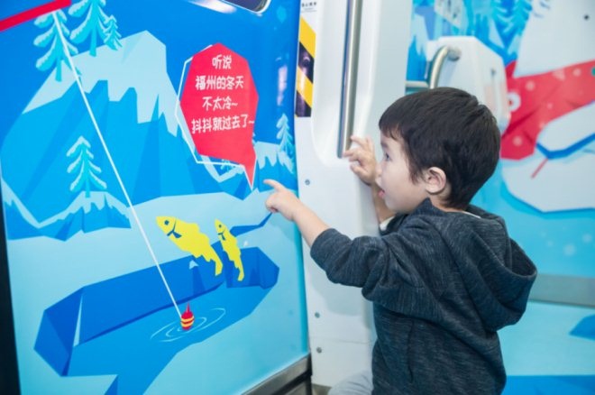 為了迎接62周年慶,福州地鐵一號線“東百號”地鐵專列也換上了冬季新裝,升級打造玩趣樂園。專列拋開“福州一年四季滿是綠意”的常規束縛,以極地世界為創意靈感,展現有別于南方城市的冰雪王國,為市民的日常出行打造一份小驚喜。