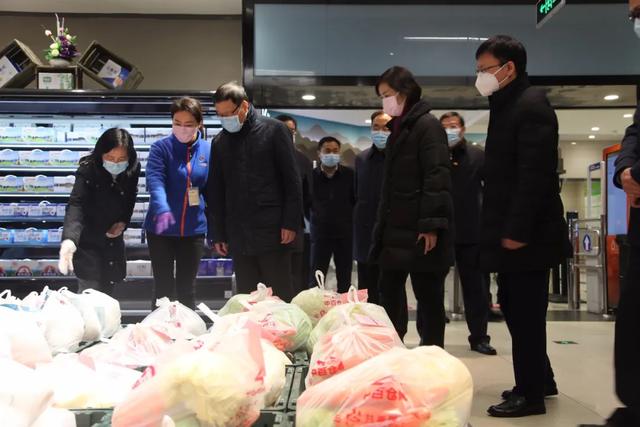 應書記一邊聽取工作人員匯報,一邊詢問菜品的價格以及生活物資的儲備情況。他指出,10元蔬菜包體現政府對困難群體的愛心,要做好和社區的對接,發放好10元蔬菜包,滿足好貧困家庭、困難群眾、孤寡老人等困難群體的日常基本生活所需;要做好生活必需品的供應,滿足好市民日常基本生活需求。應書記詳細了解當前民生商品的儲備情況,楊總表示中百集團基本生活物資貨源充足,確保供應。