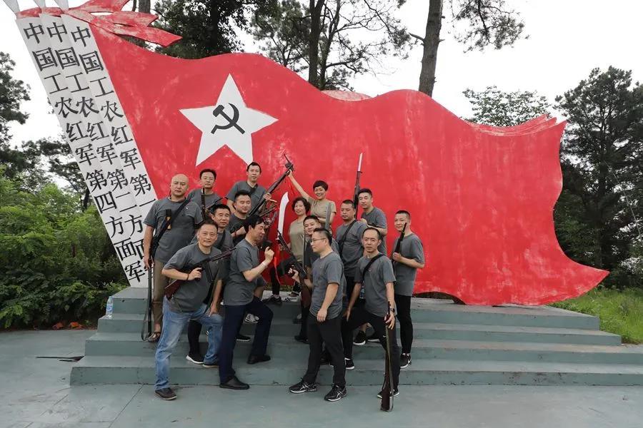 “紅軍不怕遠(yuǎn)征難,萬水千山只等閑”, 在大金山國防園,南京新百所有黨員統(tǒng)一著裝、佩戴黨徽、整齊列隊,重走了2.5公里的模擬“長征之路”?!昂霌P(yáng)偉大的長征精神,繼承紅軍的優(yōu)良傳統(tǒng),不忘初心,牢記使命,不怕犧牲,排除萬難······”出發(fā)前,所有黨員高舉右手握拳莊嚴(yán)宣誓。